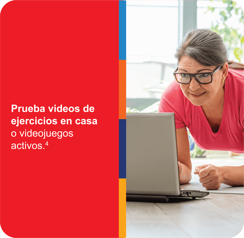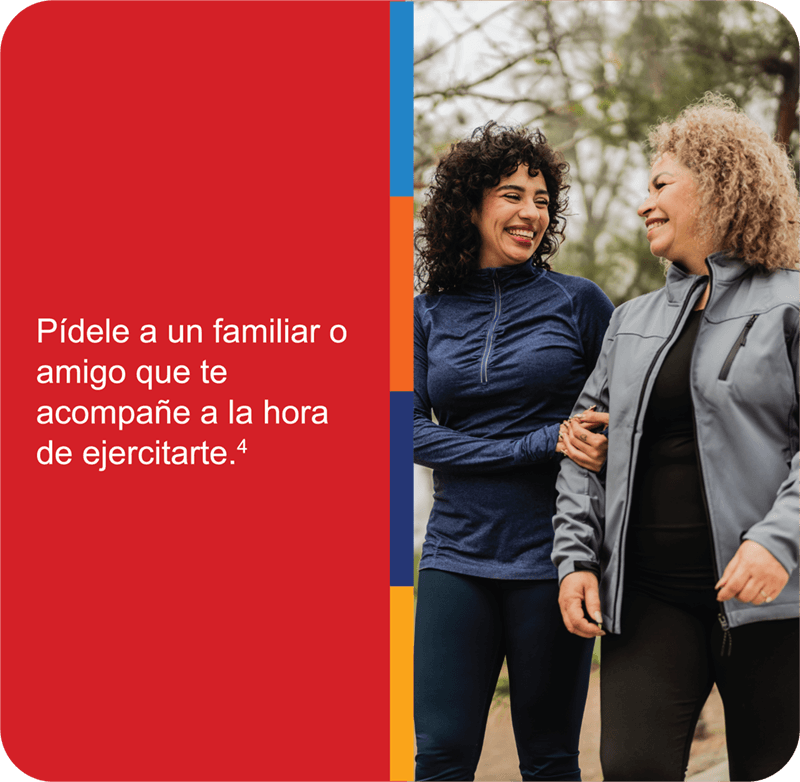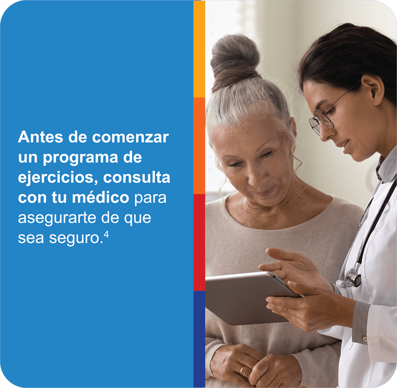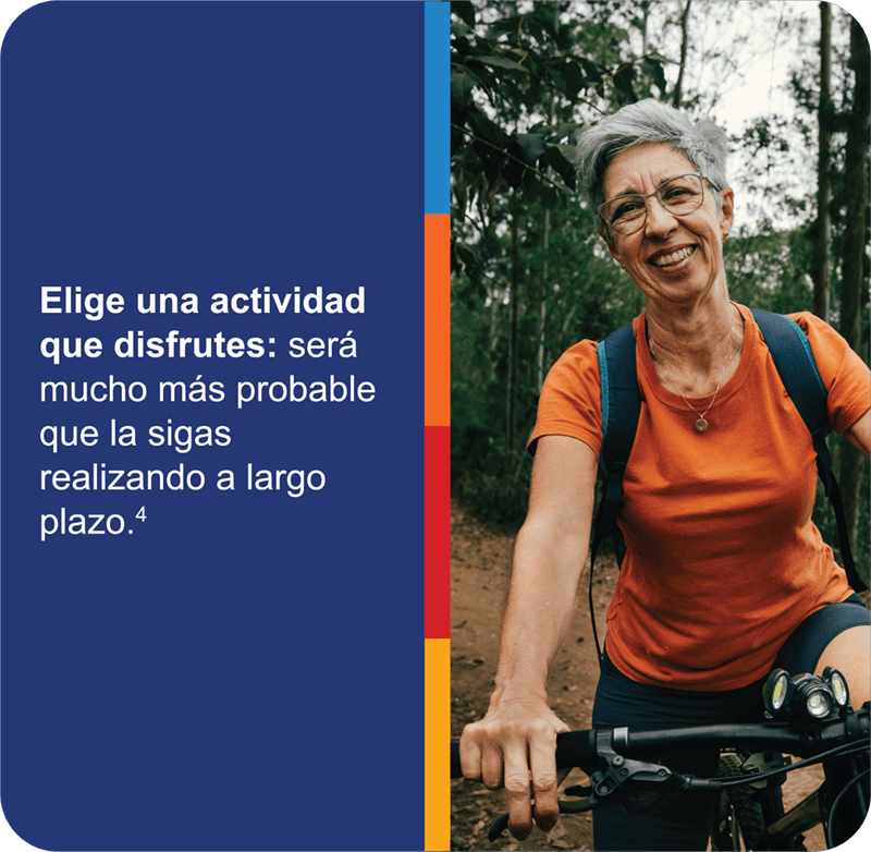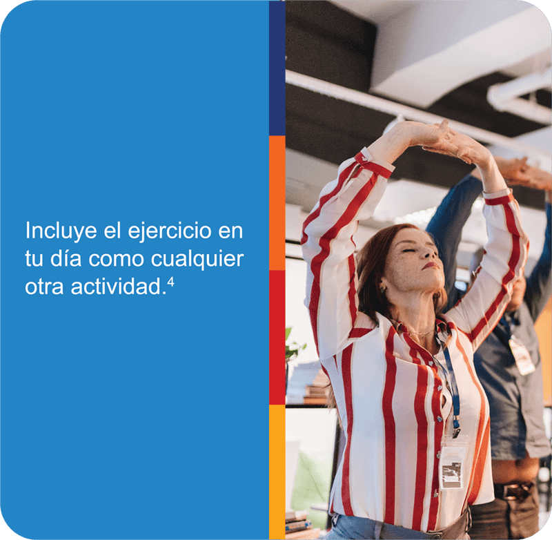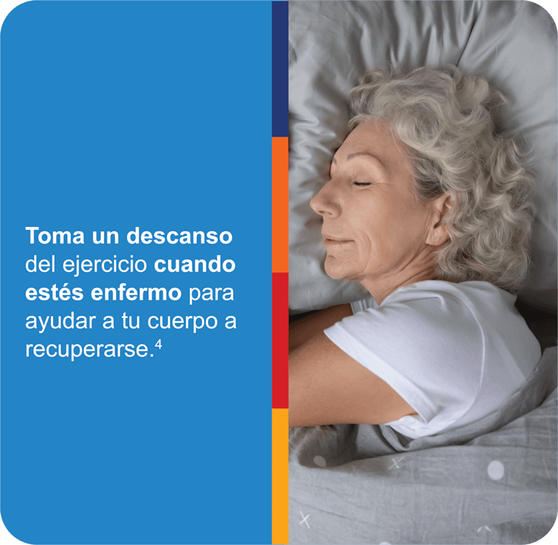A la hora de hacer ejercicio, recuerda que debes calentar lentamente durante los primeros 5 minutos de cada sesión para que tu frecuencia cardíaca aumente gradualmente, y para relajar y aumentar el flujo sanguíneo a tus músculos. Del mismo modo, al final de cada sesión, enfría durante 5 minutos para reducir gradualmente la frecuencia cardíaca y la presión arterial, y para ayudar a normalizar tu temperatura corporal.4